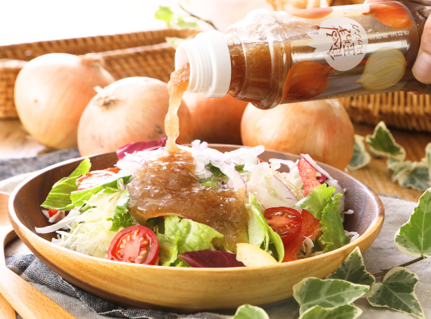 甘みの強い淡路島産玉ねぎを、贅沢に使用。具材がたっぷり入って、まるで“食べる”ドレッシング。野菜はもちろん、肉や魚にもぴったりです。